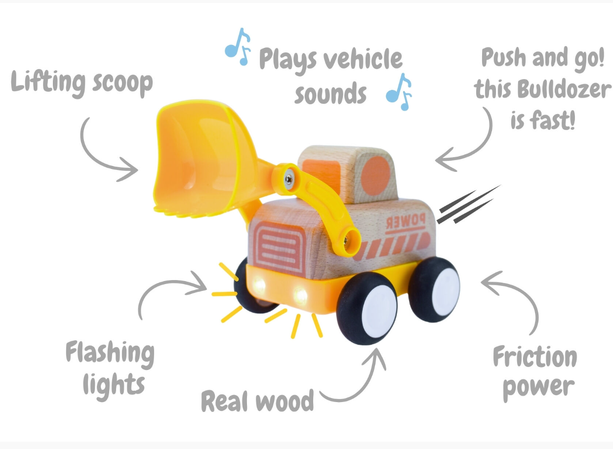 Eleganter – WOODEN FRICTION TRUCK BULLDOZER WITH SOUND AND LIGHT