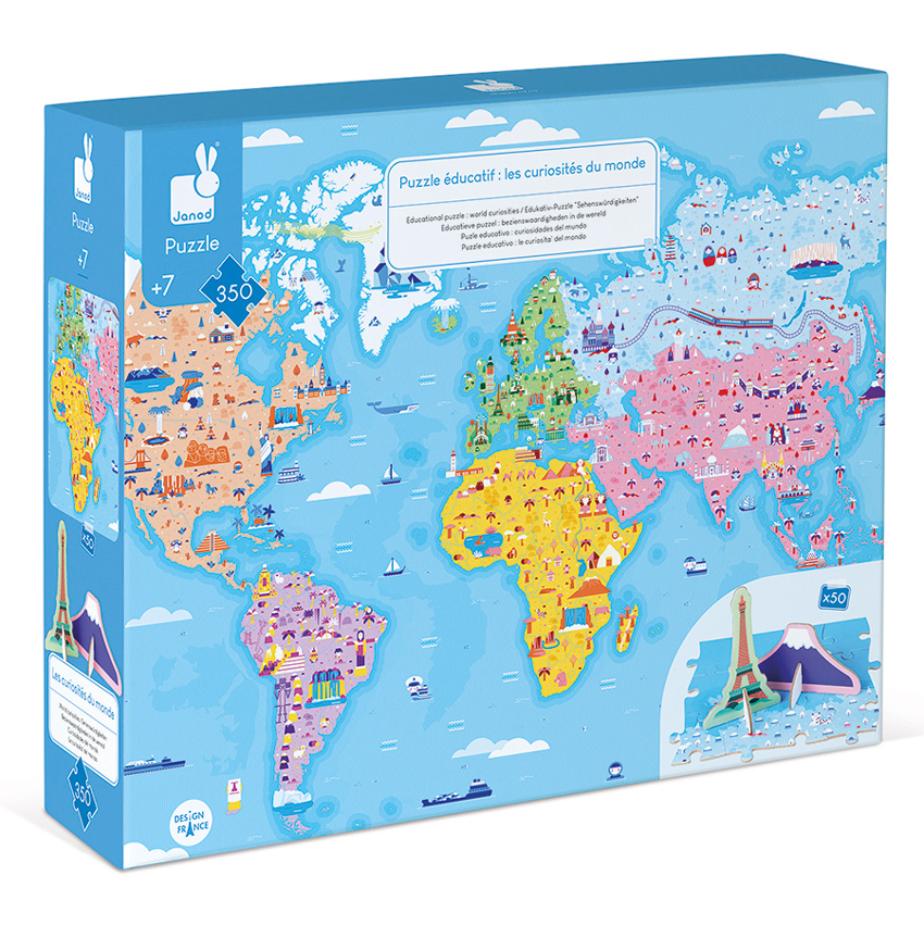 Complete with a poster and instruction booklet for reference on amazing curiousities from around the world, the Educational World Puzzle from Janod is a 350 piece jigsaw that is ideal for ages 7 and up. Once the puzzle is finished, put together the 50 cardboard figures, some as high as 10cm, and place them in the part of the world they exist. For beginners the continents and figures are colour coded to help with placement and for those more skilled, see if you can name all of the wonders without needing the reference book!
