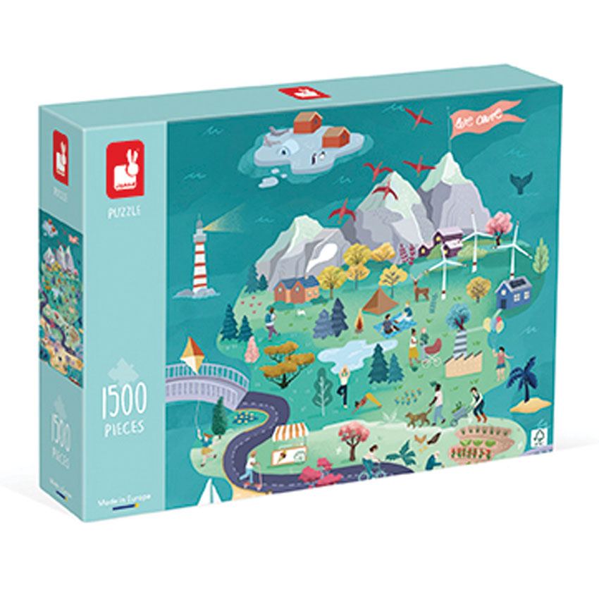 There are so many eco-friendly activities to explore on Janod’s Harmony Islands Puzzle. Go to an island where you will move from the beach to the mountains in a very ‘green’ spirit thanks to some environmentally responsible travellers. It’s large vertical format allows for thorough exploration of the wealth of detail and invites you to join the fun! The smaller pieces require precision and dexterity to complete the picture, perfect for developing concentration and enjoying some quiet time. Once all 1500 pieces are assembled, this superb puzzle will also make a beautiful picture to frame. Made in Europe with FSC cardboard and paper from sustainably managed forests, this magnificent jigsaw is ideal for children aged 10 years and up but will also delight the adults.