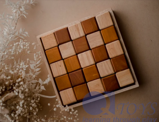 This set of 25 cube blocks will have your little engineer exploring balance and gravity through play. This handcrafted wooden blocks measure 4cm and come conveniently in a little wooden box measuring 22cm.