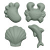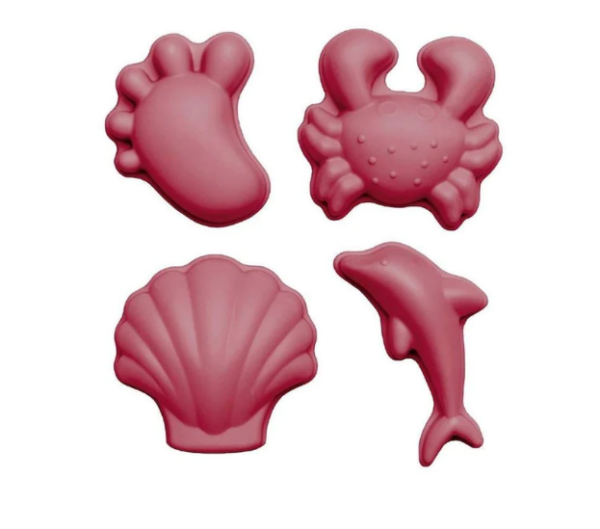 A set of 4 super soft 100% silicone sand moulds, all wrapped up in a net bag.